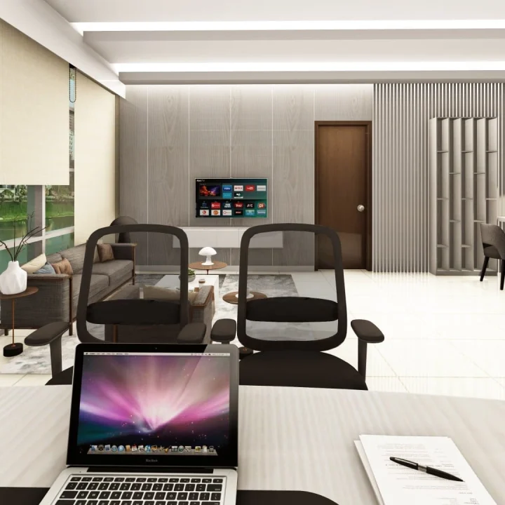 This office room project along Barishal Road reflects a minimal yet elegant approach to workspace design. The concept focuses on calm sophistication — a setting that promotes clarity, focus, and comfort for productive discussions and decision-making.