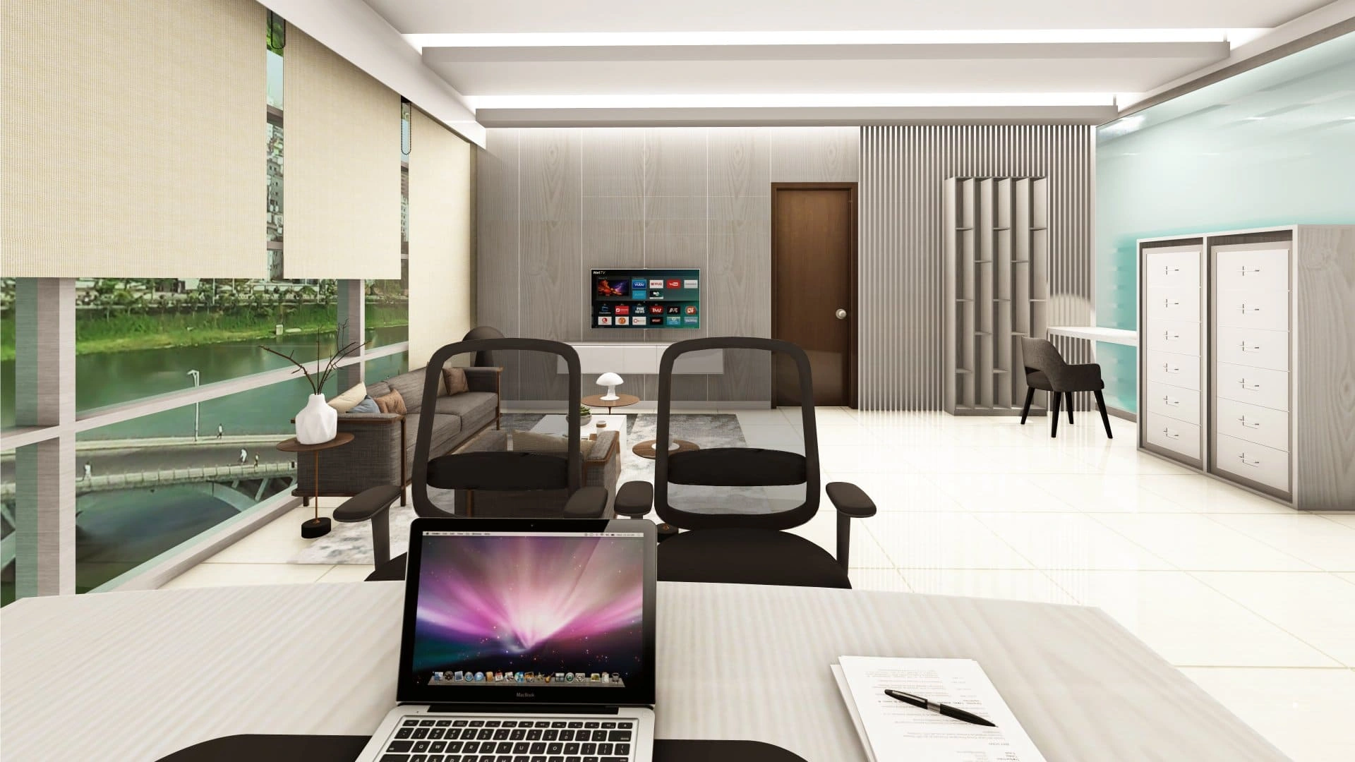 Every element — from the furniture arrangement to the use of light and material contrast — was thoughtfully composed to embody Civic Architects’ vision of functional elegance in professional environments.