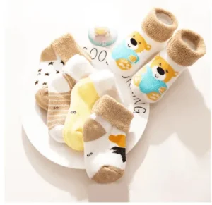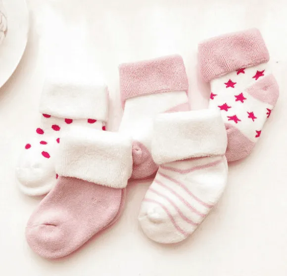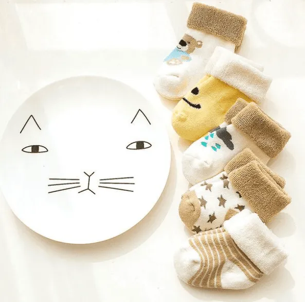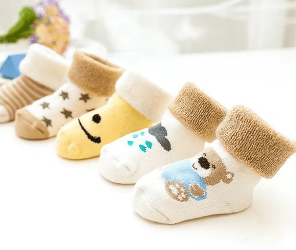 5 Pairs Warm Baby Socks Set Newborn Infant Cotton Terry Non-Slip Booties