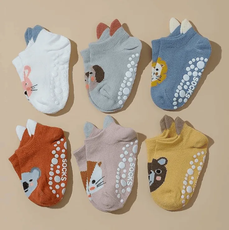 6-Pack Adorable Anti-Slip Baby Socks – Grippers. Soft, breathable ankle socks for safe playtime. Keep toddlers safe!