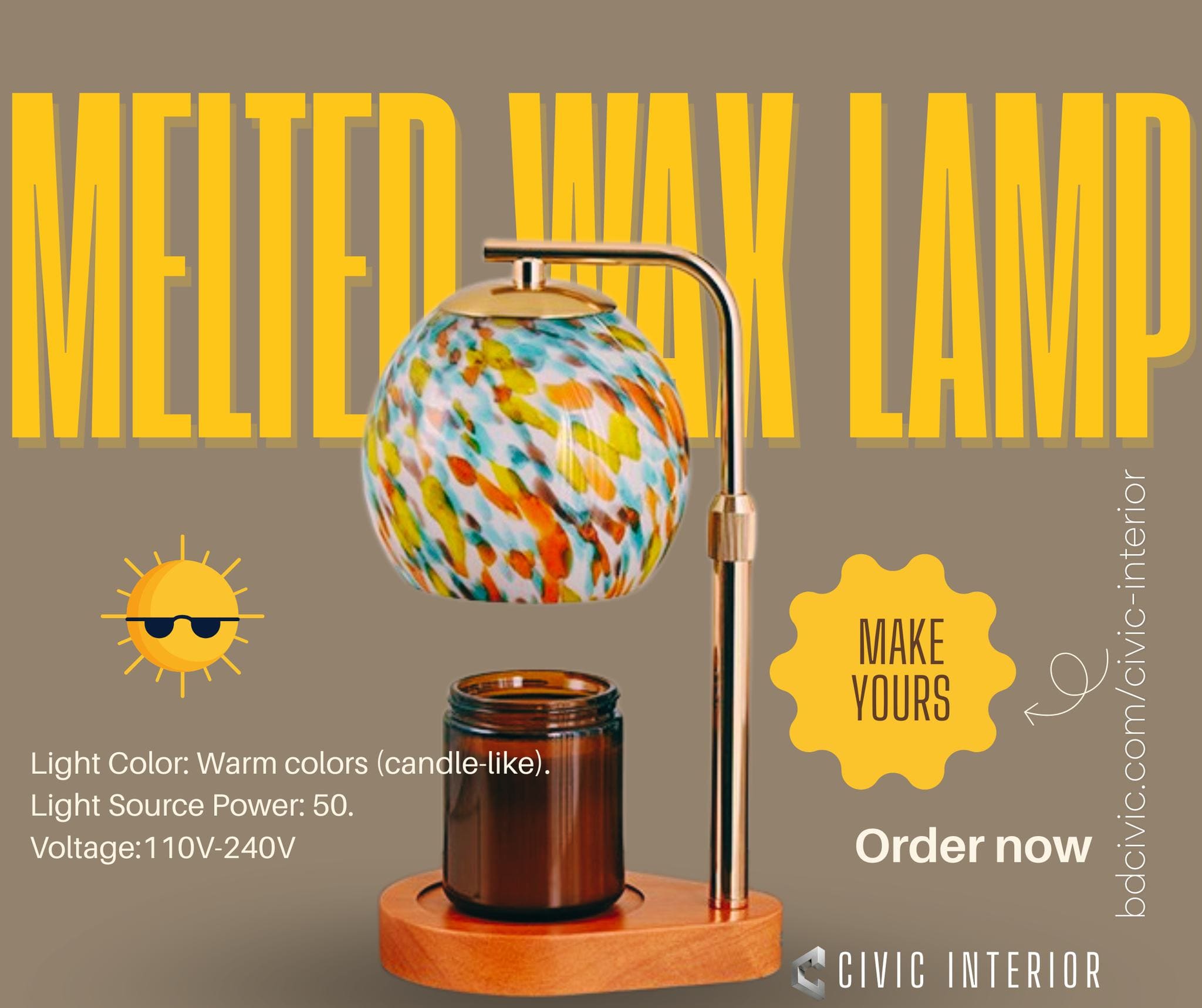 Just place your candle on top, plug in the lamp, adjust the switch—and enjoy the ambience.