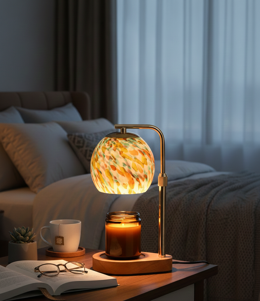 Add a touch of warmth, color, and elegance to your home with this stunning Colorful Glass Candle Warmer Lamp. Designed with a melted-wax inspired look, this lamp gently warms your favorite scented candles—filling your room with long-lasting fragrance without smoke or flame.